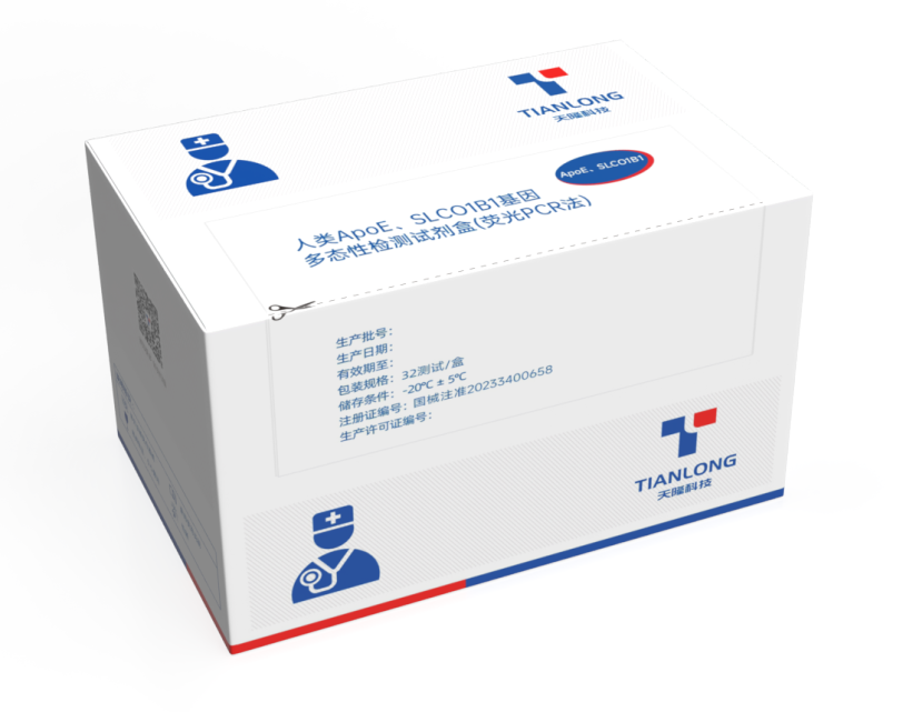 天隆科技自主研发的人类ApoE、SLCO1B1基因多态性检测试剂基于荧光PCR技术平台,选用具有高抗干扰特性的Taq 酶和配套缓冲体系,可耐受血液中的PCR抑制因子,对稀释全血可直接扩增,能定性检测人全血样本中ApoE基因c.388T>C和c.526C>T位点、SLCO1B1基因c.388A>G和c.521T>C位点的基因型,用于指导他汀类药物的合理用药,助力更安全降脂。