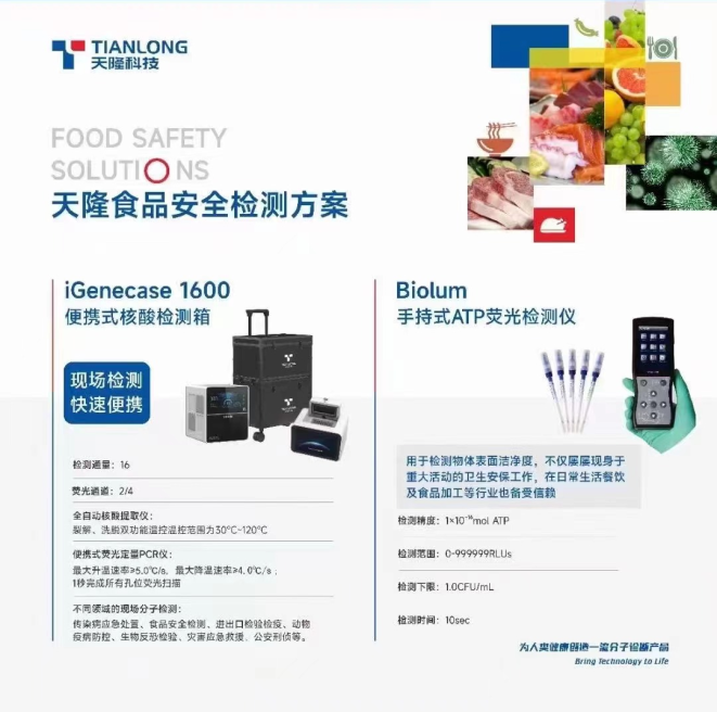 此次会议,天隆科技携iGenecase 1600便携式核酸检测箱、Biolum手持式ATP荧光检测仪等食品安全检测方案亮相大会。作为国内基因检测、分子诊断领域的创新领导者之一,天隆智造吸引了众多新老用户的广泛关注。