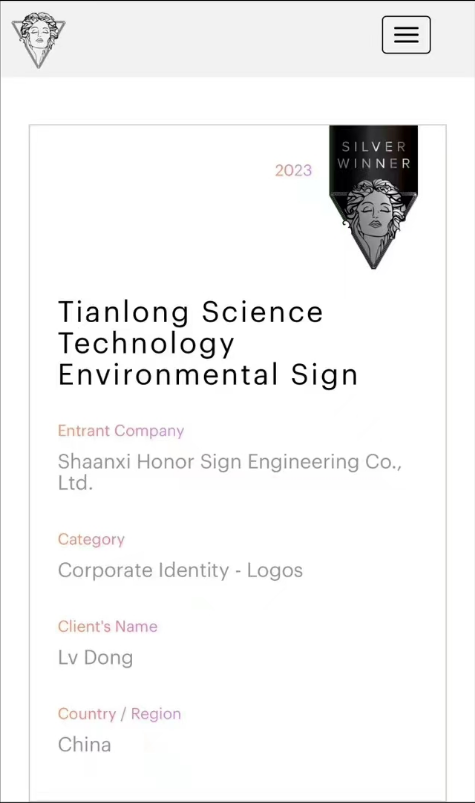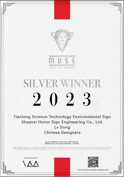 近日,由美国国际奖项协会International Awards Associates(IAA)主办,全球创意领域极具影响力之一的缪斯设计奖结果揭晓,天隆科技VI标识中的环境标识荣获2023年度缪斯创意设计银奖。