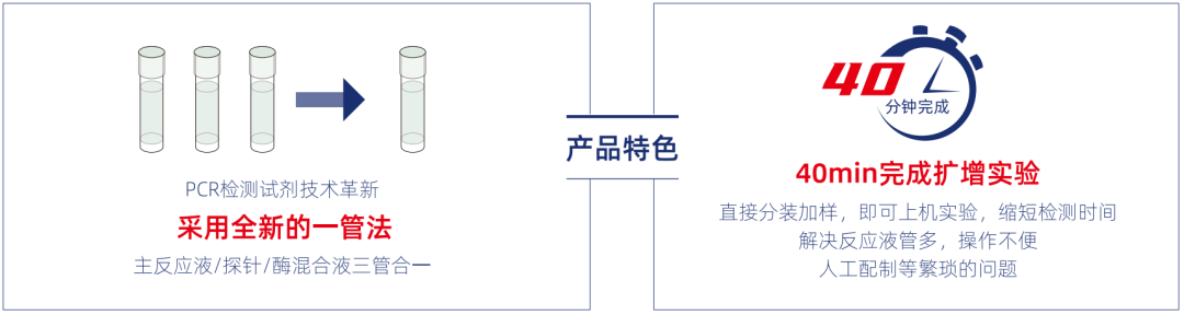 天隆科技猴痘病毒核酸检测试剂基于荧光PCR平台,采用一管法检测,试剂分装后即可上机检测,操作更为便捷,40min出具结果。检测灵敏度高达200 copies/mL,内标质控有效避免假阴性,确保检测结果精准可靠。