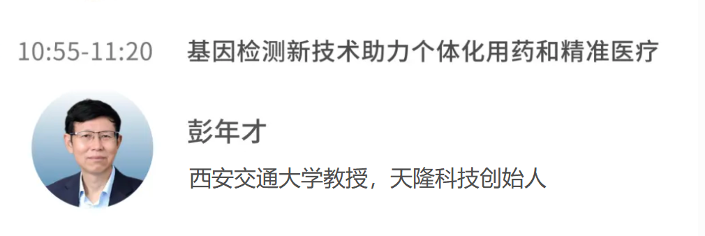 天隆科技创始人、西安交通大学博导彭年才教授作为本次会议的特邀嘉宾,将于6月29日上午在C馆C305会场做题为“基因检测新技术助力个体化用药和精准医疗”的学术报告。