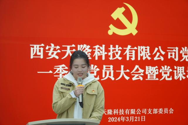 为进一步加强基层党组织建设,贯彻落实“三会一课”制度实施,3月21日,西安天隆科技党支部举行2024年第一季度党员大会暨党课培训活动。会议听取审议了支部委员会2024年度党建工作计划,通告了2023年度党支部民主评议情况,宣读了“党员先锋岗”创建事项,并对第一批“党员先锋岗”名单进行举手表决。活动由党支部干事吉蕊主持,全体党员参加会议并现场签订《廉洁从业承诺书》。