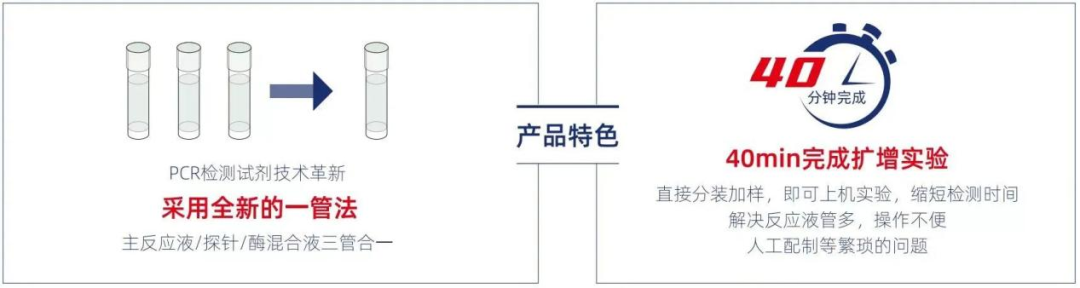其中,天隆猴痘核酸试剂基于荧光PCR技术平台,采用一管法检测,检测灵敏度达200 copies/mL,可在40min内实现猴痘病毒的快速检测。